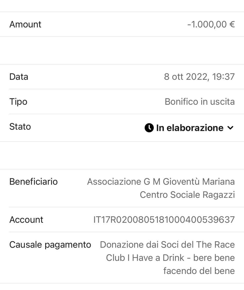 Tutti i nostri associati ti sono vicini. Con l’augurio che questa donazione ti aiuti a raggiungere la famosa luce in fondo al tunnel.